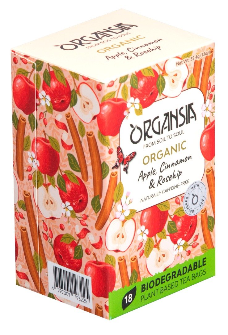 Organický bylinný čaj bez kofeínu, ktorý spája sladkú chuť jabĺk, korenistú hrejivosť škorice a ovocnú sviežosť šípok do plynulej, lahodnej šálky.